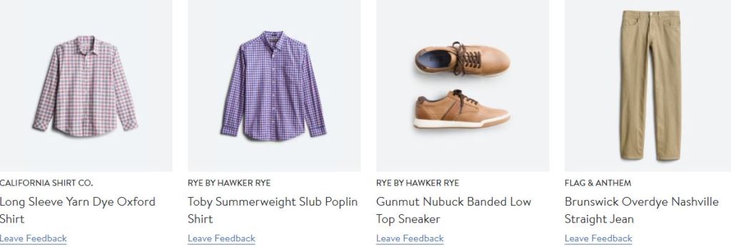 I got an email from Stitch Fix For Men showing me what my stylist, Caitlin, had chosen for my first “fix.” I had a list of about ten items and I could choose up to five. If I only saw three that I liked, I’d have to accept her judgement on two choices that I wouldn’t have a chance to review. In this particular case, I easily found five items I liked from the provided list.